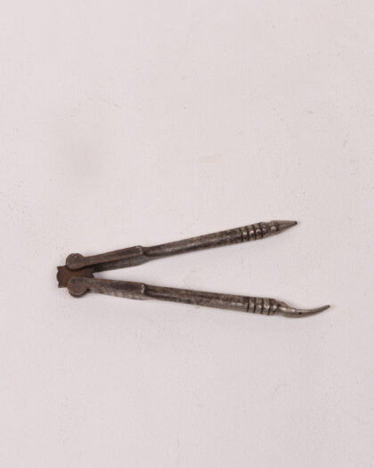 Vintage metal nutcracker tool with textured handles. Practical and decorative, adding a touch of heritage to the home.