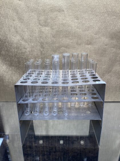 Vintage metal test tube rack with test tubes