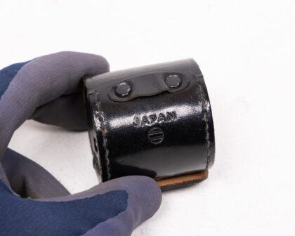 Minolta Camera Lens with Case. This vintage camera lens comes with its original black leather case. The lens has a silver metallic finish, with 'Minolta' engraved on the side. The case has 'Japan' engraved on the back. An ideal gift for the camera enthusiast. Please see images for details.