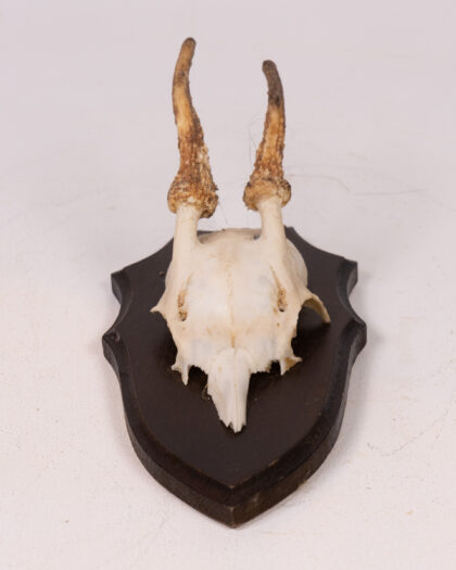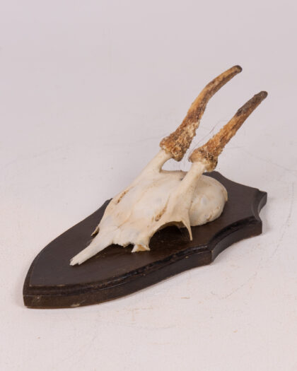 Vintage mounted Roe Deer skull. Mounted on a dark wood shield shaped plaque. Great display piece. Good condition.