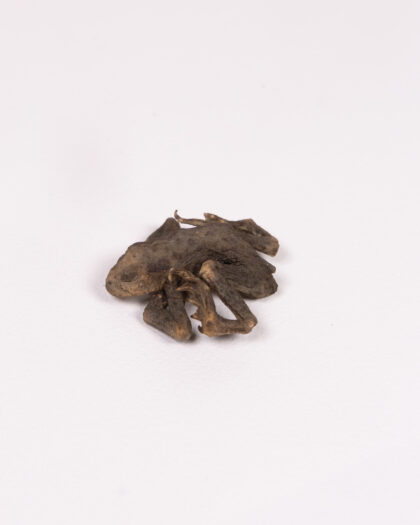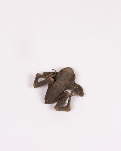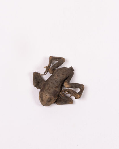 A vintage Mummified frog. The frog is brown in colour. It would be suitable for a home decor, and a gift for him or for the home. Can be used as Halloween decoration. There are no visible damages.