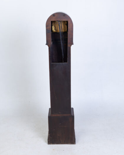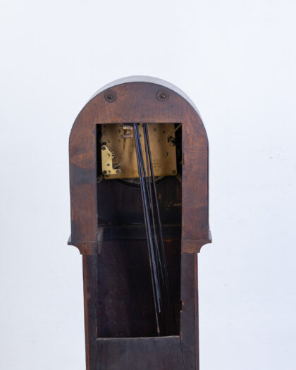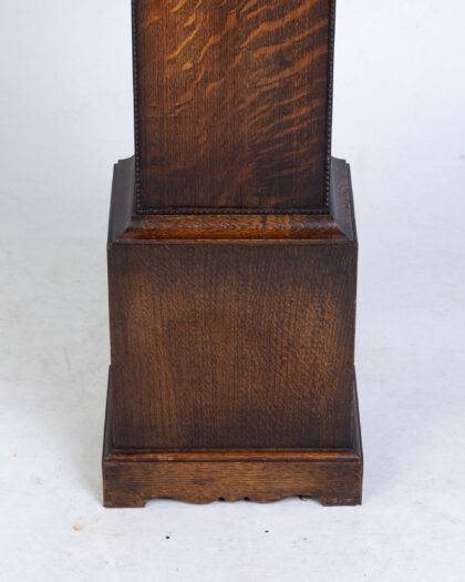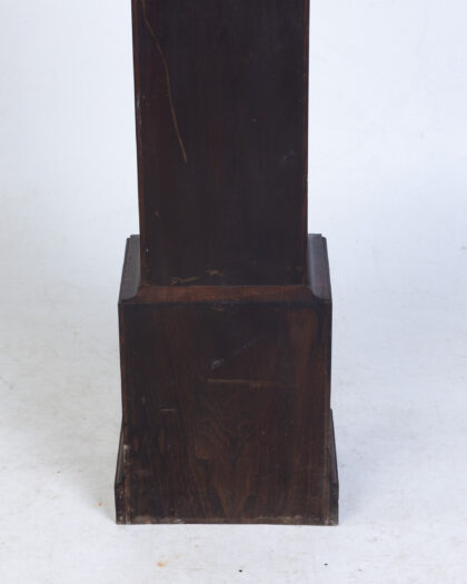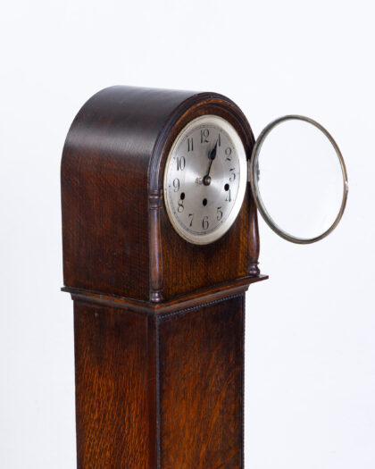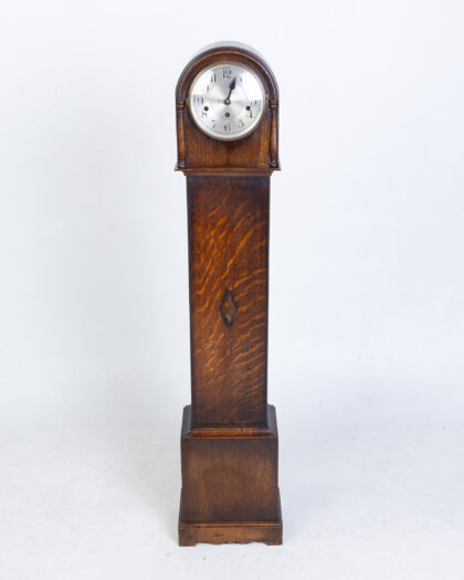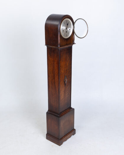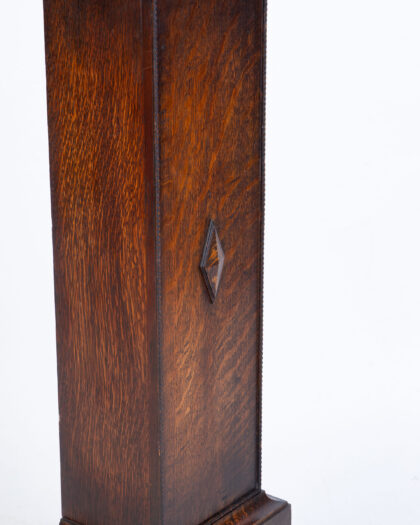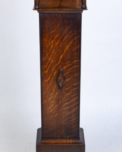 FONTENOY Vintage French Oak Grandfather Clock with silver face & diamond detail. Features opening door. Adds character to any room.