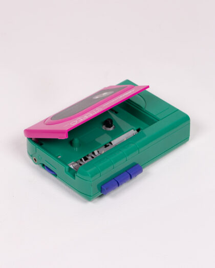 Vintage Omega Stereo cassette player in green and pink plastic. Retro 80s design. Great display piece. Untested.