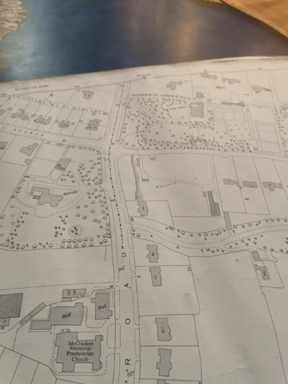 An ordnance survey map of the Malone Road area of Belfast. Surveyed in 1957