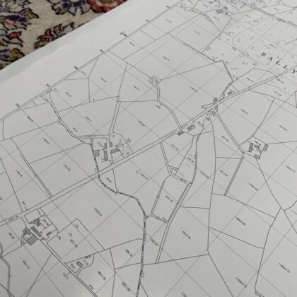 An ordnance survey map of Ballymacashen Northern Ireland. Surveyed 1974.