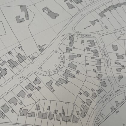 An ordnance survey map of Belmont Road , Belfast Northern Ireland including Campbell College. Surveyed 1967.