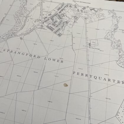 An ordnance survey map of Strangford Lower, Northern Ireland. Surveyed 1976.