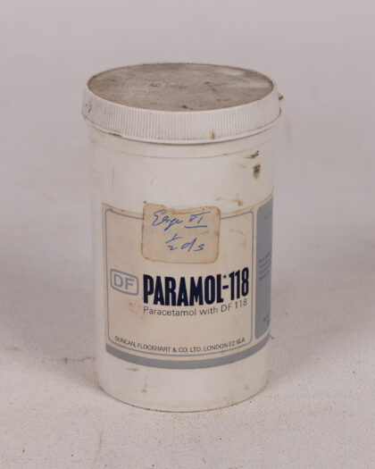 Vintage Paramol DF 118 Tub from Duncan, Flockhart & Co. Ltd. London. Authentic pharmaceutical collectible, perfect for display.