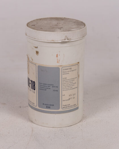 Discover a unique piece of pharmaceutical history with this vintage Paramol DF 118 Paracetamol tub from Duncan, Flockhart & Co. Ltd. of London. This authentic collectible once contained Paracetamol with Dihydrocodeine, manufactured in England. The original label is well-preserved, detailing dosage information and ingredients, offering a fascinating glimpse into mid-20th century medical practices. Bearing the marks of its age and journey, including some charming staining and marking, this empty tub makes an exceptional display item for any collector of medical memorabilia, vintage advertising, or historical artifacts.