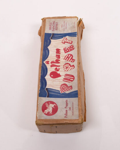 Vintage Pelham Puppets Simple Dancing Puppet in original box. Good condition, box has some wear. Puppet has fuzzy material.