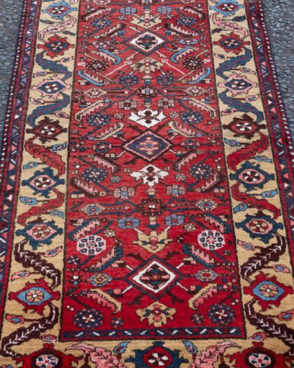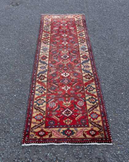 Vintage Persian rug runner. Intricate design with rich colours. Good condition. A beautiful and unique piece for any home.