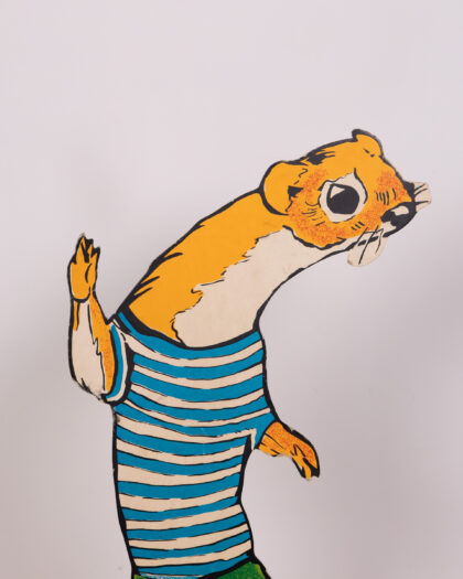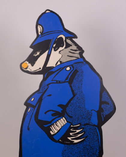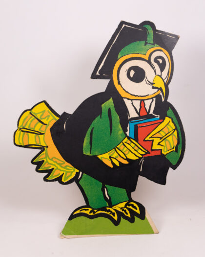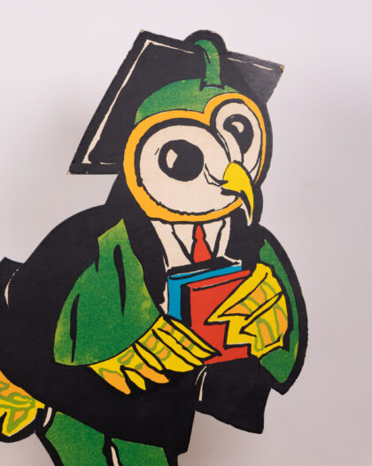 Vintage animal cardboard character set featuring a policeman badger, yellow-trousered squirrel, red-shirted rabbit & graduation owl.