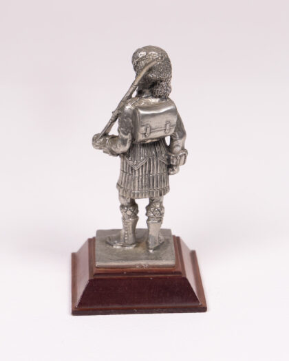 A vintage figurine depicting a 92nd Gordon Highlander from 1864. The figurine is primarily made of pewter, capturing the details of the uniform and weapon. Mounted on a wooden base with an engraved plaque. The figurine is in good condition for its age, with some minor wear. A nice item for display in the home, or a unique gift for a collector of military memorabilia.
