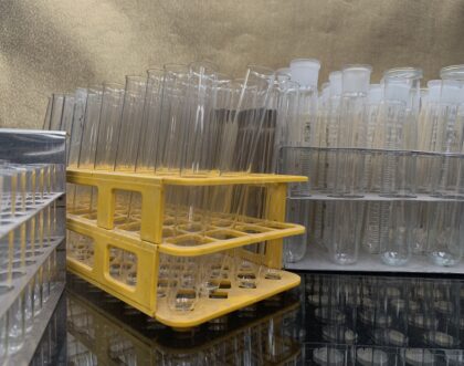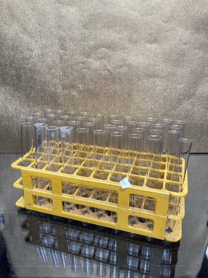 Vintage plastic test tube rack with test tubes