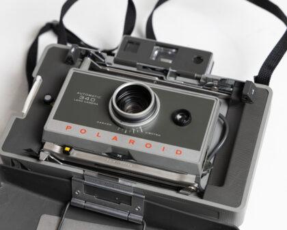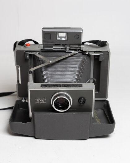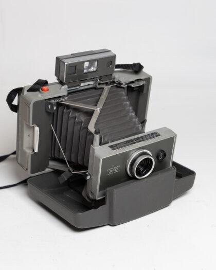 This vintage Polaroid Automatic 340 Land Camera is a sought-after collectible item for photography lovers. Featuring a sturdy build and a classic design, it is ideal as a display piece or a prop in vintage-themed settings. The camera includes its original bellows and lens components. This item has not been tested, we cannot verify if it is working or not and is sold as a prop only.