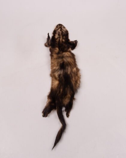 Vintage european polecat (Mustela Putorius) pelt. The fur of a polecat consists of bold black markings on the extremities and head, and cream fur with black tips on the body and cheeks.