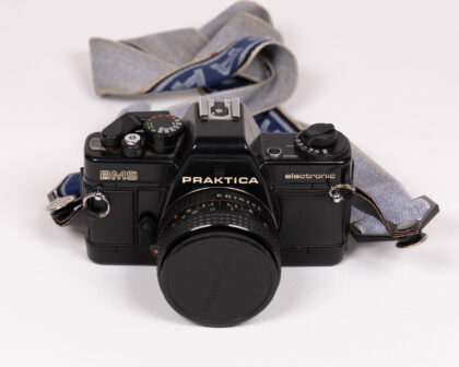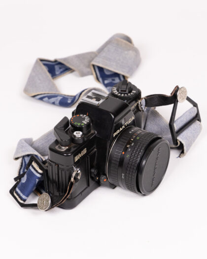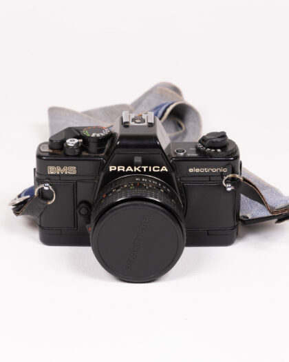 Vintage Praktica BMS camera set with lens, flash, and accessories. Perfect for collectors or vintage photography enthusiasts! Used condition.