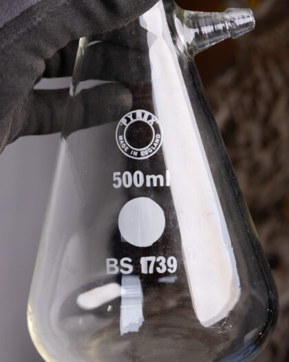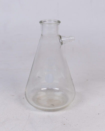 Vintage Pyrex 500ml Erlenmeyer flask with side spout. British Standard 1739 laboratory glassware collectible. Perfect for the science enthusiast!
