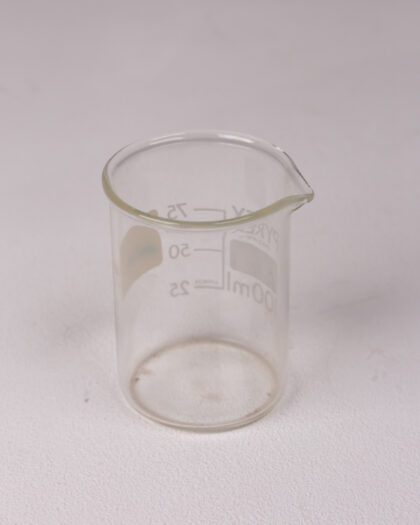 Discover a piece of scientific history with this authentic vintage Pyrex England 100ml glass laboratory beaker. Crafted from clear glass, it features classic white printed volume measurement lines, adding to its genuine vintage appeal. This beaker maintains a small pouring lip, characteristic of its original laboratory function. While displaying its age gracefully, there is a distinct area where something has been written and rubbed off, with the number '4' still visible in permanent marker, adding to its unique character and story. Perfect for those seeking a quirky addition to their kitchen decor, a unique pen holder in a home office, or a distinctive accent for a scientifically-themed display, this vintage Pyrex beaker offers both historical charm and versatile decorative potential.