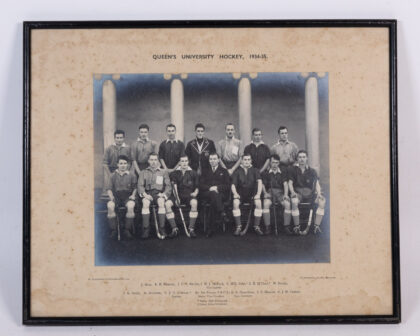 Vintage framed photograph of Queen's University Hockey team, 1934-35 season. Great for sports enthusiasts or alumni. Good condition.