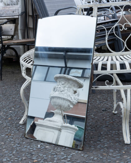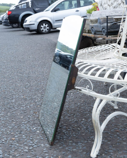 Vintage rectangular unframed mirror. Plain glass with wooden back, suitable for various rooms.