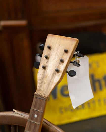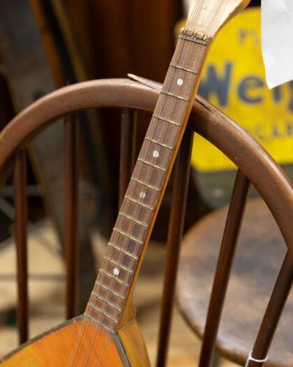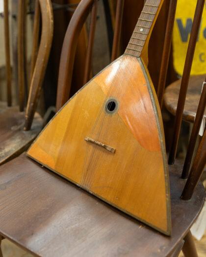 Delight in the rich, traditional sounds of this vintage Russian balalaika. Perfect for music enthusiasts and collectors alike, this triangular stringed instrument offers a unique and authentic folk experience.
