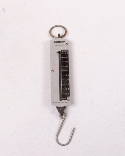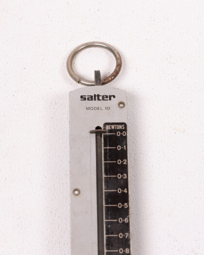 Vintage Salter Model 10 spring balance scale, made in England. Measures in Newtons. A practical and collectible tool with a retro aesthetic.