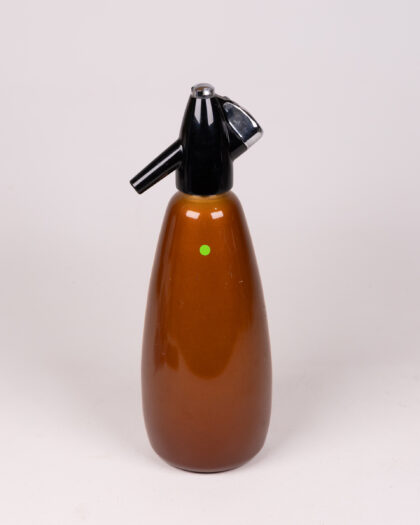 Add a touch of vintage charm to your home bar with this stylish seltzer bottle. Featuring a rich, amber-brown glass body and a sleek chrome and black dispensing head, this bottle is as functional as it is decorative. Perfect for creating sparkling beverages or simply displaying as a retro accent, this seltzer bottle brings a classic touch to any setting. In excellent condition and ready to use, this seltzer bottle is a delightful piece of barware history.