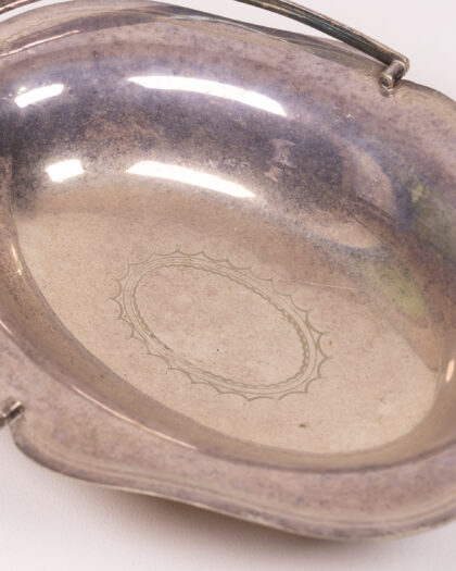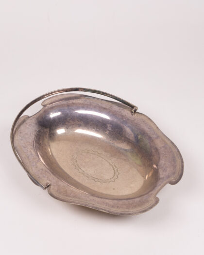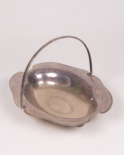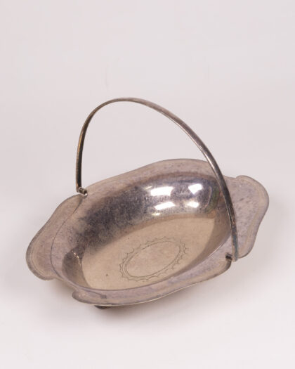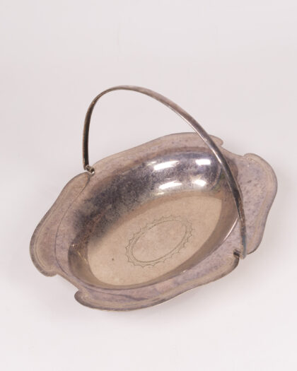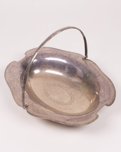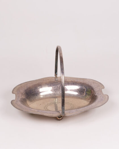 Elegant vintage silver plated basket featuring a delicate design and sturdy handle. Perfect as a decorative or functional piece.