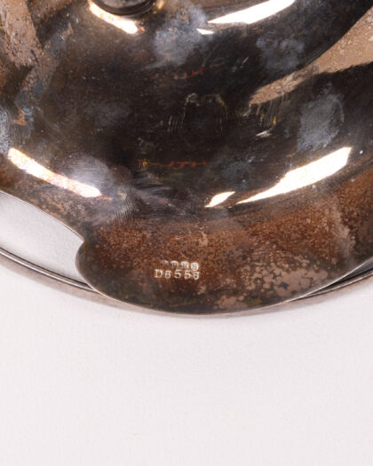 This vintage silver plated basket showcases a timeless design with a shaped rim and a decorative central motif. The basket features a sturdy, hinged handle for easy carrying. Ideal as a decorative piece for displaying fruit, flowers, or other items, this basket adds a touch of sophistication to any room. The underside has maker's marks. This would make a beautiful gift. In good condition, consistent with age and use.