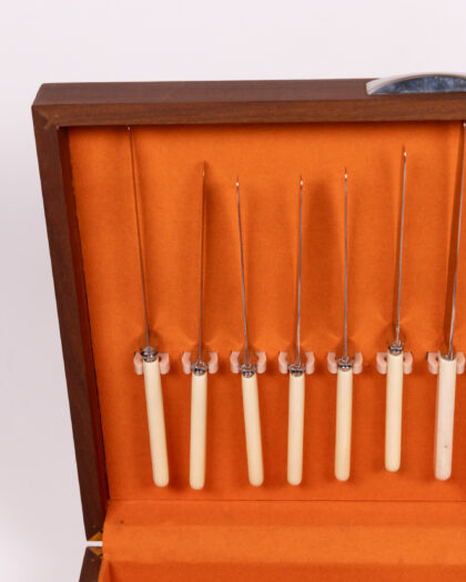Elegant vintage cutlery set in a wooden box. Perfect for adding a touch of sophistication to any dining experience. Well-preserved.