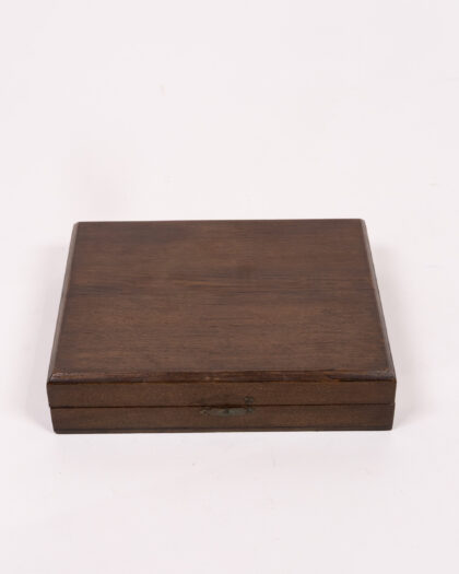 Vintage silver plated knives and forks in wooden presentation case, with blue velvet lining. In good condition.