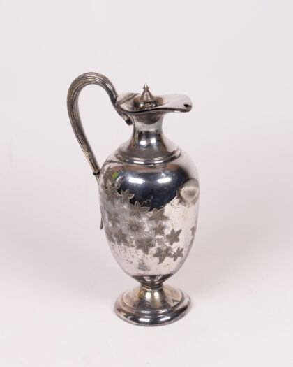 Vintage EPNS Silver Jug with floral engraving. Elegant piece with hinged lid, perfect for display. Wear consistent with age.
