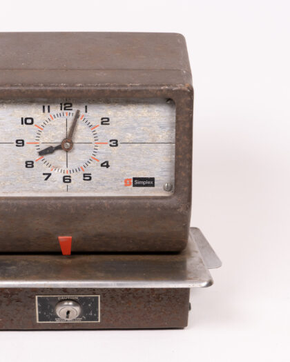 Vintage Simplex Time Recorder. Distressed industrial style clock, perfect for collectors or those who love unique vintage items.