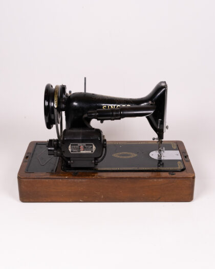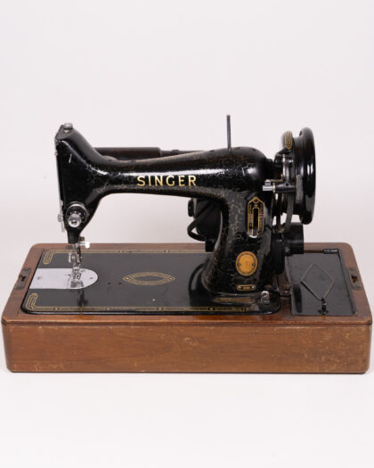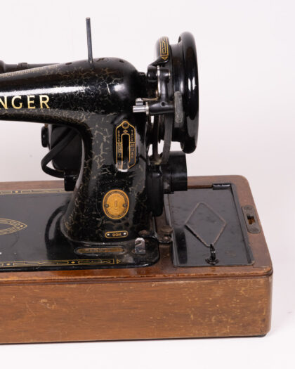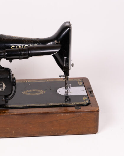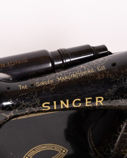 Classic Vintage Singer 99K Sewing Machine with Foot Pedal & Case, Black & Gold Finish.
