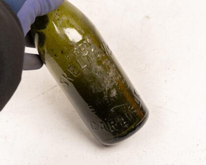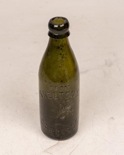 Vintage green glass bottle from Skelton's of Carlisle. Embossed lettering. Collectible breweriana. Perfect for display. In fair condition. Circa early 20th century.