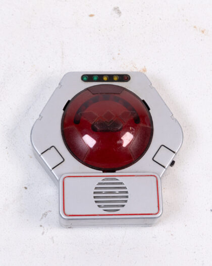 Vintage Star Sensor electronic game accessory by Worlds of Wonder, Inc. from 1986. It features a hexagonal silver plastic case with a red domed sensor, indicator lights, and a speaker area. The bottom has a textured black pad and screw-on battery cover. It is a vintage item in good condition but may have signs of wear. This collectible piece would be ideal for retro gaming enthusiasts. Untested.