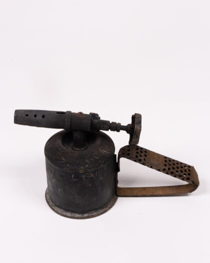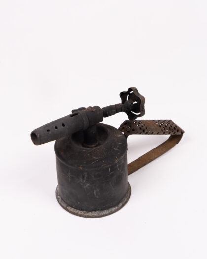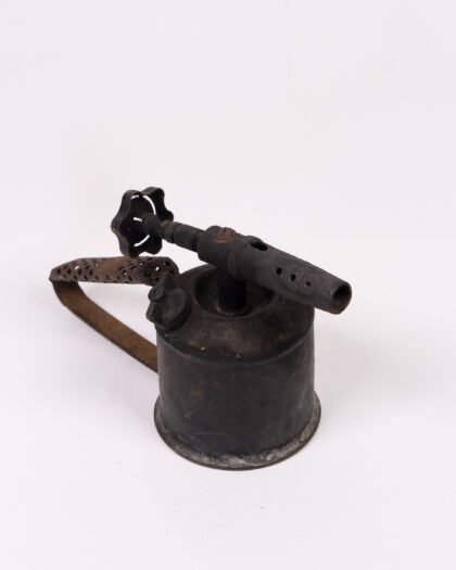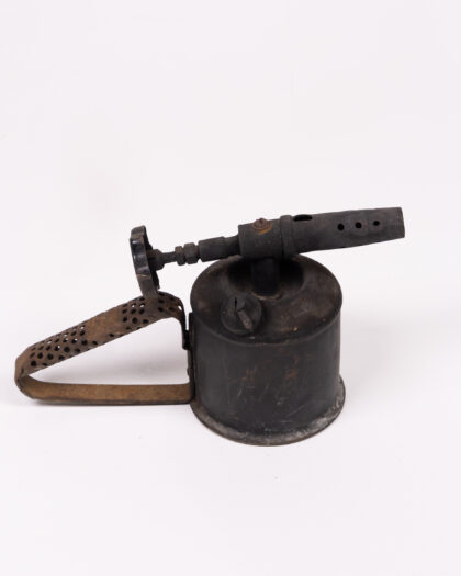 Vintage steel blowtorch with a perforated handle. A unique piece with signs of wear, perfect for a collector or as a decorative item.