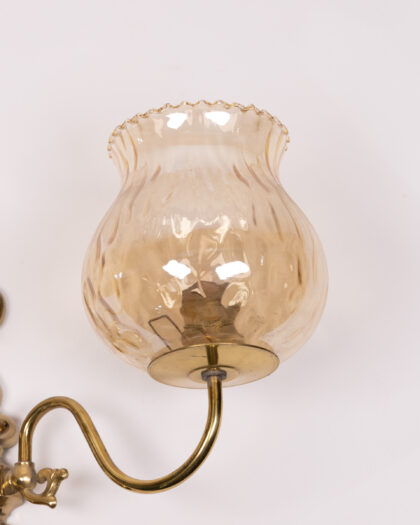 Vintage-style wall light with ornate brass and amber glass shades. Perfect for adding a touch of glamour to any living space. In good condition.