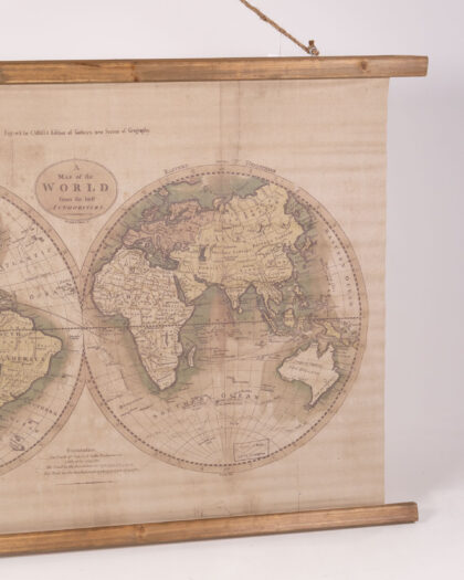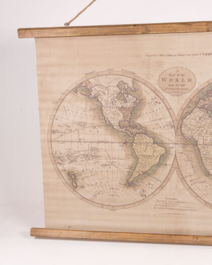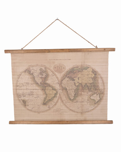 Enhance your space with this captivating large world map print, a high-quality reproduction reminiscent of historical cartography. Printed on durable canvas, this piece is beautifully suspended from a rustic wooden frame, complete with a natural jute hanging rope for effortless display. The print features meticulously detailed continents, oceans, and authentic vintage-style typography, lending it a truly antique aesthetic. Its muted colour palette of creams, browns, and greens creates a warm and inviting feel, making it a perfect focal point for any room. This impressive piece measures H92cm x W106cm x D2cm and weighs 1kg, ready to add a touch of worldly charm to your home or office.