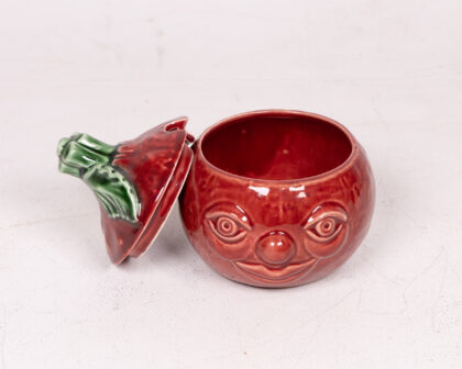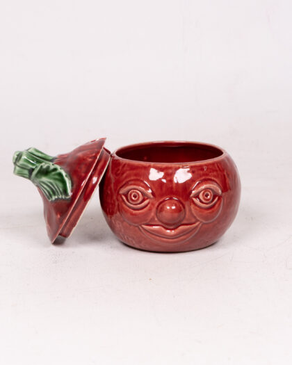 Vintage novelty beetroot jar with lid and quirky face. Perfect for display or storage in the kitchen, dining room or living room.