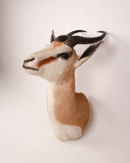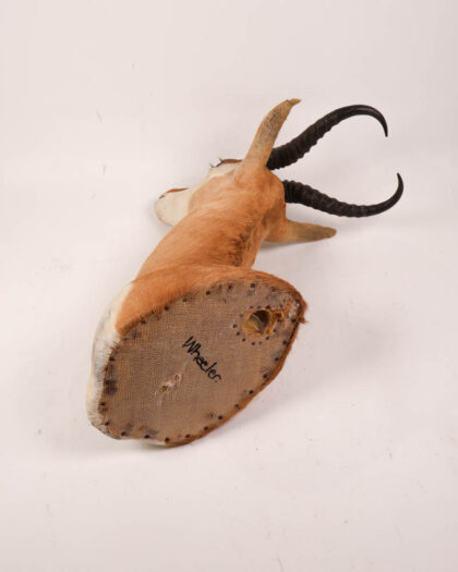 Vintage Springbok taxidermy head mount. Authentic horns. Mounted on fabric backing. Some wear. Ideal for the unusual collector.