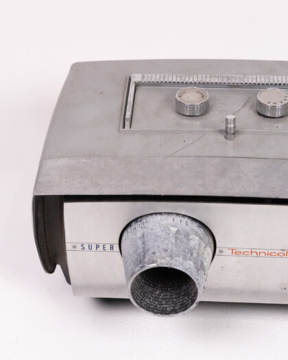 Vintage Technicolor 510 instant movie projector. Silver and grey metal body in original condition with attached power cable. Collectible item. Note untested, sold as is.