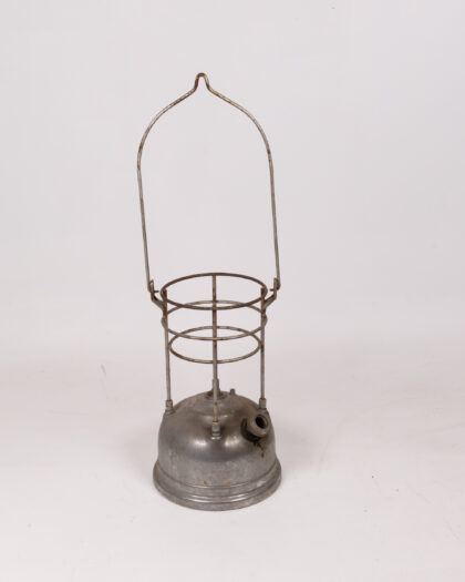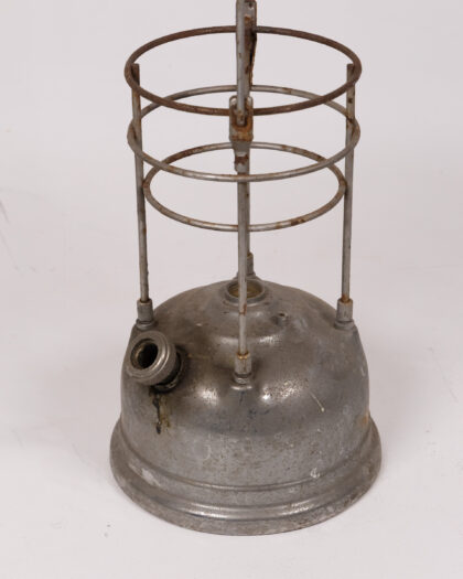 Vintage Tilley lamp base. This lamp base is made of metal, with a silver finish. It features a circular base with a raised platform and a series of holes for the lamp's components. The base is in good condition, with some signs of wear and tear commensurate with its age. There is some rust on the metal. The Tilley lamp base would be a great addition to any home, and would add a touch of vintage charm to any room. This vintage lamp base is perfect for collectors or anyone who appreciates unique lighting.