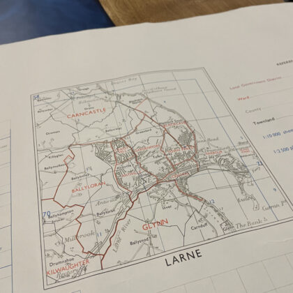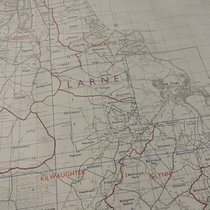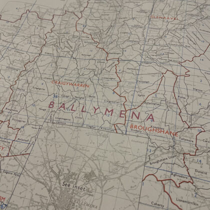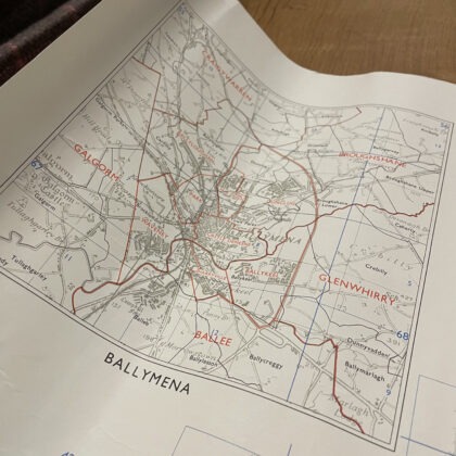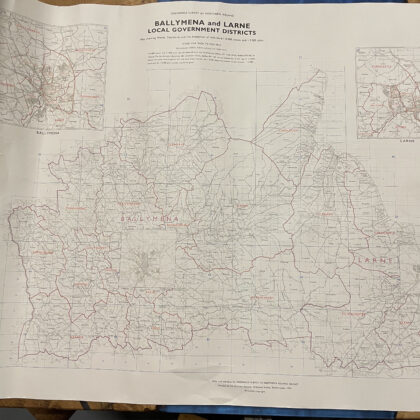 A townland ordnance survey map of Ballymena and Larne, Northern Ireland.