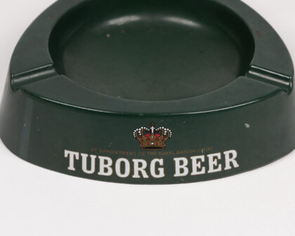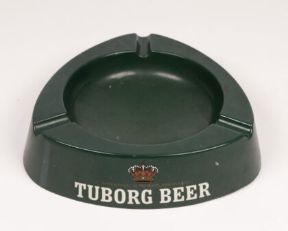 Vintage green plastic Tuborg Beer ashtray with crown logo. Perfect for collectors or home bars. Adds a touch of retro charm.