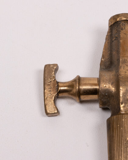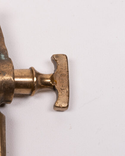 Authentic vintage W. F. Flower & Co. reclaimed brass tap, featuring a unique ribbed design. Ideal for industrial projects or distinctive decor.