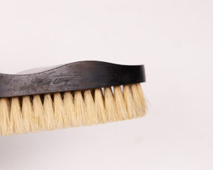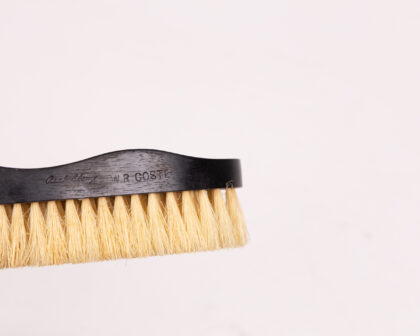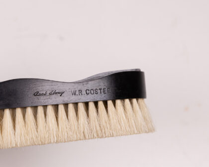 Vintage W.R. Coster brush set in leather case. Ebony brushes with cream coloured bristles, perfect for personal grooming. Collectible set.