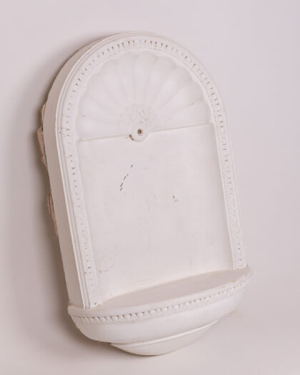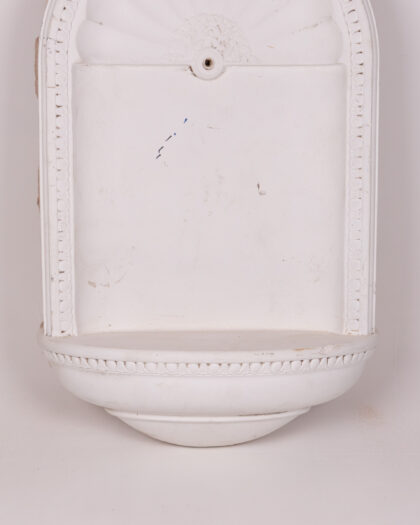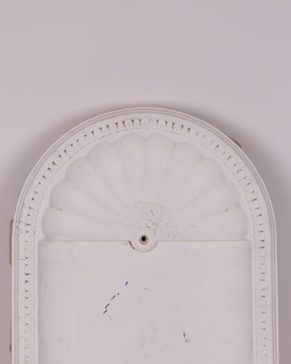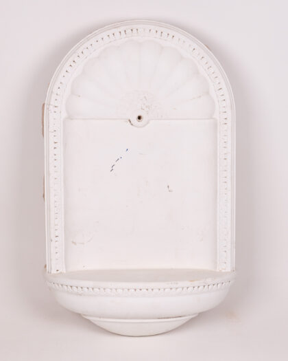 This ornate wall pocket is made from a sturdy cast material and finished in white. The design features an arch with shell detailing and an ornate beaded trim. There is a recessed area for placing items, and a semi-circular base. This vintage-style piece would look great in any room and would make a quirky addition to your home decor. Please note there are a few small marks on the piece but these are hardly noticeable. This charming pocket will add interest to any wall.