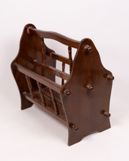 Vintage wooden magazine rack with a rich brown finish. This charming piece offers a practical and stylish storage solution for your favourite magazines or books. In good vintage condition, it adds a touch of character to any living space. Perfect for decluttering and showcasing your reading material. A beautiful and functional accent piece.